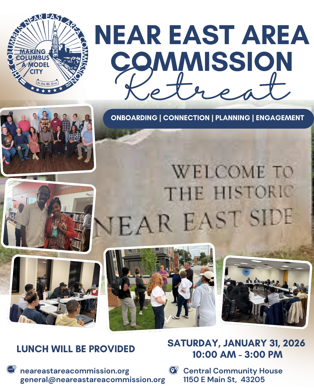 Join the Near East Area Commission for their Retreat on Saturday January 31 at 10AM at Central Community House (1150 East Main Street). More information at http://www.neareastareacommission.org.